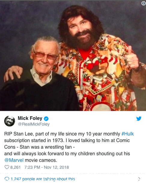 Ultimately, beyond Wrestling, many Professional Wrestler’s have expressed their admiration and respect for the King of The Comic Books.