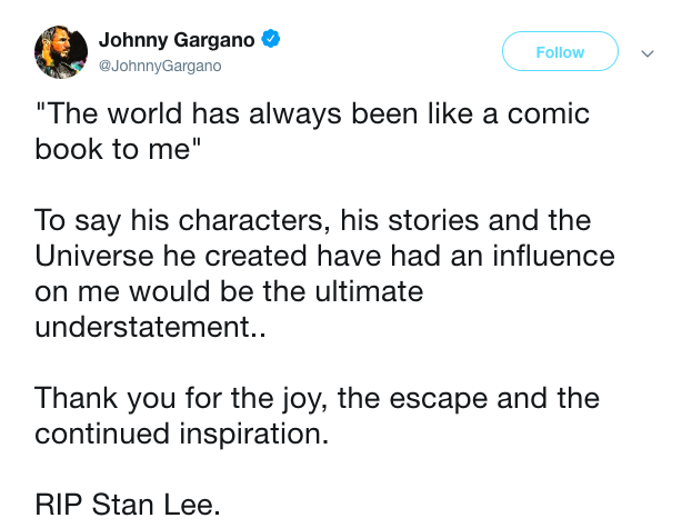 To quote Hugh Jackman “We’ve lost a creative genius. Stan Lee was a pioneering force in the superhero universe”.